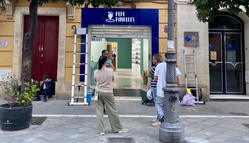 En la calle Larga de Jerez va tomando forma una nueva tienda. Un establecimiento cuya apertura es inminente, especializado en calcetines de diseño, de todo tipo de temáticas y colores.