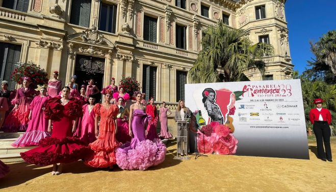 La XVI edición de la Pasarela Flamenca Jerez Tío Pepe 2023 ha sido presentada en la Real Escuela Andaluza de Arte Ecuestre, escenario elegido para un acto muy concurrido que ha contado con un desfile de modelos donde se han anticipado algunos de los diseños que se podrán ver en la pasarela oficial y que ha finalizado con una copa cortesía con vinos de González Byass.