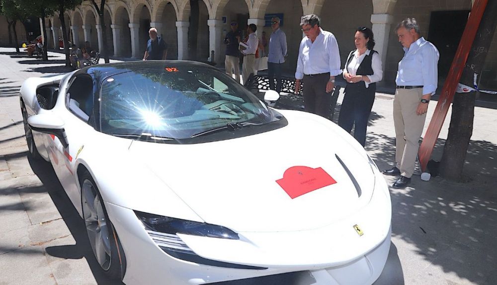 En intervalo de varios minutos, y de cuatro en cuatro, los modelos de Ferrari han realizado un cheking point en la plaza del Arenal. El primero ha sido un turismo Ferrari con bandera de la República Popular de China, al que han seguido modelos con la enseña de Estados Unidos, Azerbajan, Bélgica y Marruecos.