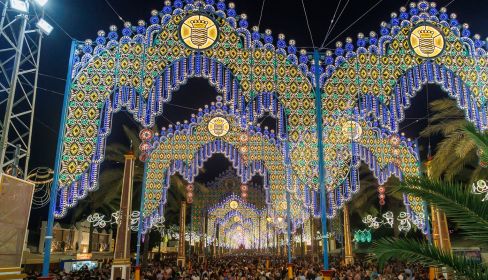 El nuevo sistema de iluminación, desarrollado por la empresa Iluminaciones Ximénez, incorpora 204 arcos, 52 pórticos dobles, 1.525 metros de guirnaldas, 97 proyectores y 12 farolas, todos ellos sostenidos por 148 torretas. Con una potencia instalada de 308.257 vatios, este montaje no solo mejora el rendimiento energético, sino que también presenta una estética renovada, con diseños ornamentales inspirados en la cultura gitana, en conmemoración del 600 aniversario de la llegada de este pueblo a la península ibérica.