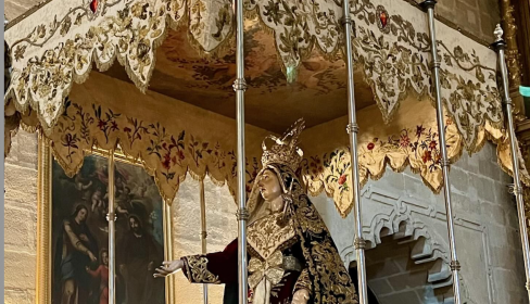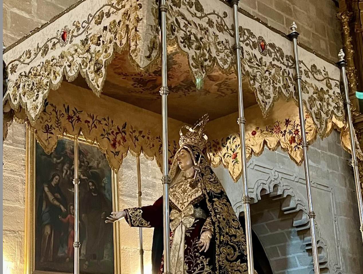 La Hermandad de la Viga ha logrado cerrar un acuerdo con la hermandad de los Gitanos por el que la cofradía sevillana cede el conocido como manto de la 'duquesa' para que lo vista la Virgen del Socorro en la Magna de Jerez. Esta imagen, al ser copatrona de la ciudad y la única que participa con esa condición, será la última de las 37 que desfilarán por la carrera oficial. Por cierto, la corporación hispalense también lo prestó para la magna que tuvo lugar en San Fernando.