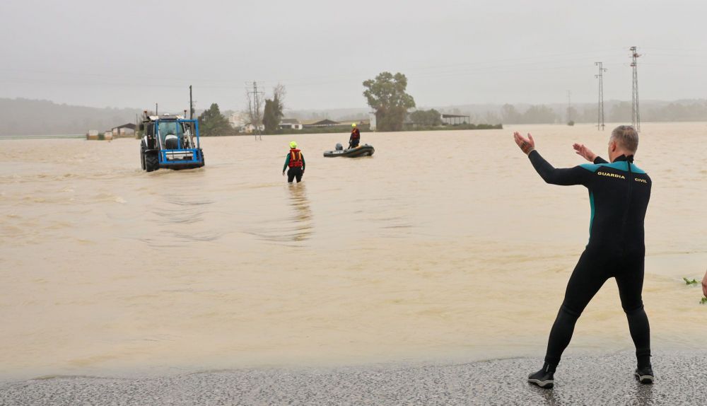 Desalojan a vecinos de 14 núcleos rurales de Jerez por la crecida del río Guadalete.