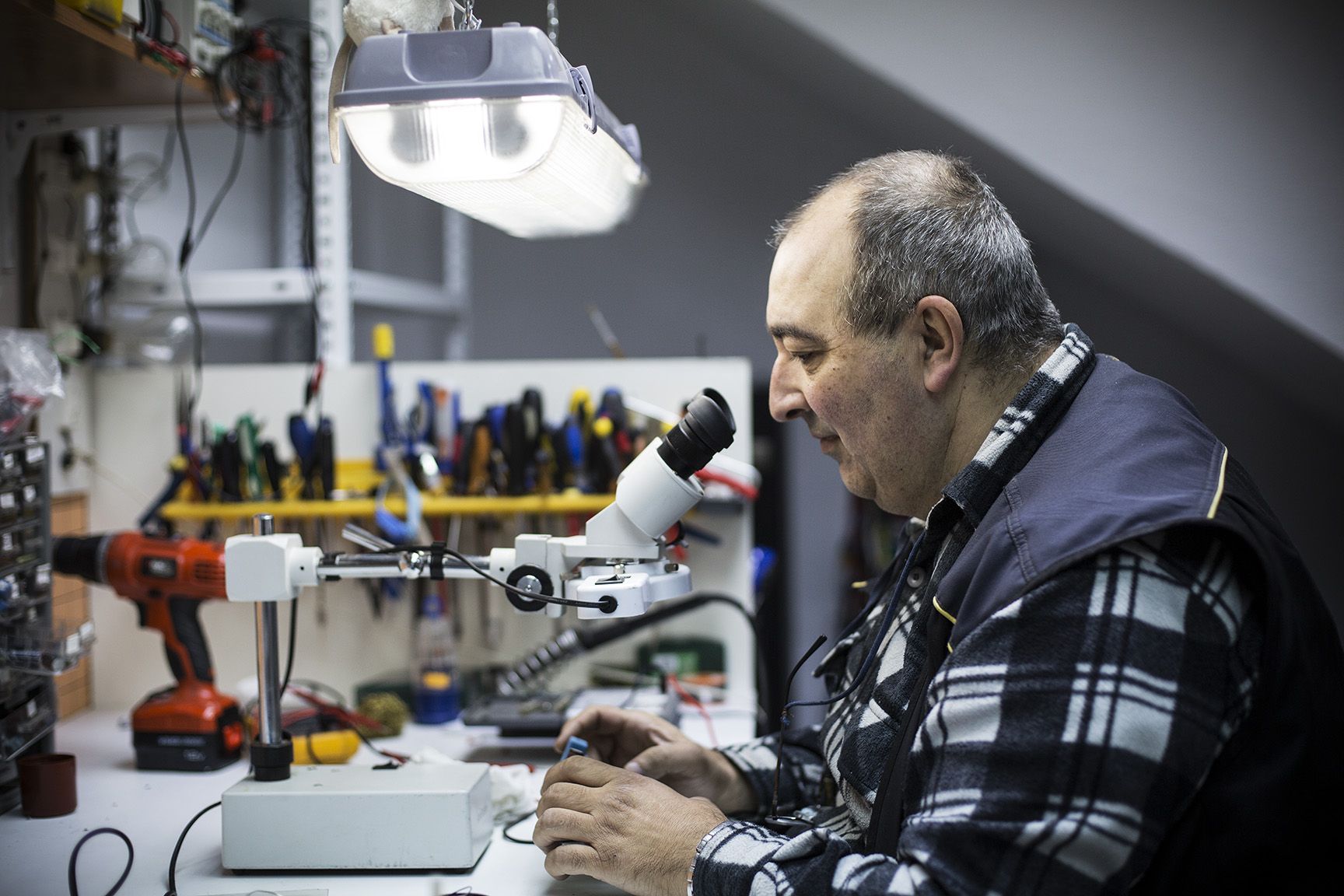 Su sueño se ha materializado en lo que han dado de sí unos 5.000 euros reunidos con no poco esfuerzo e invertidos en los 35 metros cuadrados de un local. “Antes lo veía y pensaba que era horroroso, pero lo he arreglado todo solo, claro, y con la ayuda de algunos amigos. Estoy contento y entusiasmado, otra cosa no me queda”, asegura el recién estrenado empresario. Repara electrónica industrial, ordenadores, televisores, vaporetas, pianos, “muchas cosas raras, todo lo que me entra en el local”.
