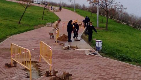Este pavimento se encuentra hundido en numerosas partes del trazado, sobre todo el lóbulo primero, bien por la cesión del terreno o bien por el mal estado de la base sobre la que se asienta. Ahora, los operarios retiran los adoquines aprovechables y reponen nuevos pero luego volverlos a colocar tras extender una capa de hormigón que garantice una sujeción más fuerte al suelo. José Antonio Díaz ha señalado que "esta cuadrilla va a arreglar todo el paseo porque está muy deteriorado por hundimientos y presenta zonas en las que ya no hay adoquines; queremos dejarlo, a lo largo de estos meses, totalmente adecuado y mejorado el paseo. Nuestro propósito es arreglarlo en su totalidad", ha subrayado.