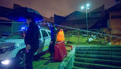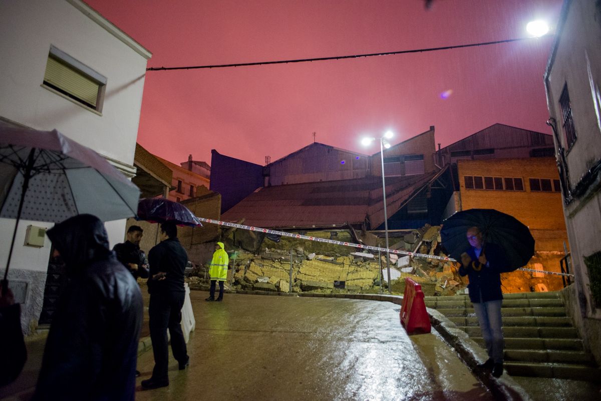 "El muro se desplomó, el ruido fue enorme y de repente nadie daba con uno de los operarios; menos mal que habían recogido sus materiales", cuentan vecinos de la zona, la barriada obrera de San José del Agrimensor, en el Distrito Sur. Hasta el lugar se han desplazado Bomberos, Policía, miembros del gobierno municipal con la alcaldesa, Mamen Sánchez, al frente, y técnicos de diferentes departamentos municipales. Después de la primera evaluación, y teniendo en cuenta el abandono y la mala cimentación que sufre el inmueble, se entiende que la acumulación de agua haya colapsado el muro de tabiquería hasta desplomarlo.