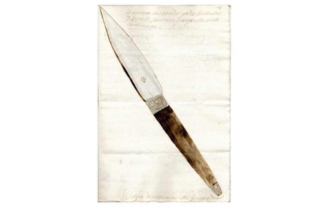 Al parecer, hubo un gran tumulto, o quimera, en la plaza de Orellana (“final de la calle del Sol y de Empedrada”) a principios de diciembre de 1832 y el teniente Fernando Jiménez encontró implicados en el mismo a dos soldados realistas, uno de los cuales, el Gutiérrez, “se dirigió a mí con la navaja que acompaño”. Luego, en las posteriores diligencias se dibuja la navaja exactamente como era: “mandó demarcase a esta continuación la navaja que consta de esta sumaria y yo el escribano certifico ser la misma reconocida por el teniente d. Fernando Jiménez, y se ejecuta a esta continuación [dibujo], cuya demarcación está igual a dicha arma”.