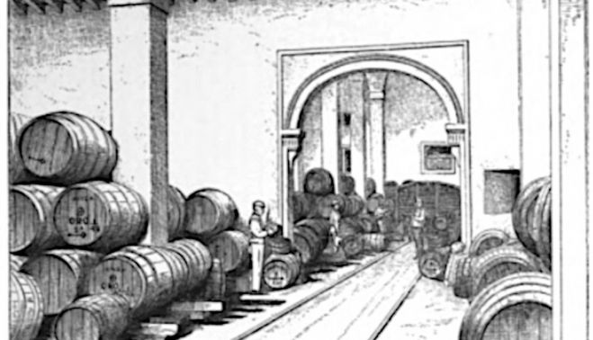 Pues bien, es igualmente en 1884 que se publicó, ignoramos el autor del mismo, un libro titulado A short account of Port and Sherry, the vintaging and treatment of the wines together with a few hints as to their choice and invaluable properties (Breve reseña del Oporto y Jerez, la añada y el tratamiento de los vinos junto con algunas pistas sobre su elección y sus inapreciables propiedades), el cual fue publicado en Londres en ese año 1884 y que hoy puede consultarse on line en el repositorio digital de la biblioteca de la Universidad de Harvard (https://library.harvard.edu/). El capítulo dedicado al Jerez (Good sherry. How the wine is vintaged and reared with hints respecting the sherries to drink and the sherries to be avoided) tiene por objeto, precisamente, exponer criterios para elegir el vino de nuestra tierra de mejor calidad. Y en dicho capítulo encontramos una serie de seis curiosas láminas, cuya reproducción es el objeto de esta pequeña aportación, en donde observamos los interiores y los exteriores de las bodegas de Sandeman, Buck and Cía., así como el despampanante palacio que hoy conocemos como Recreo de las Cadenas.