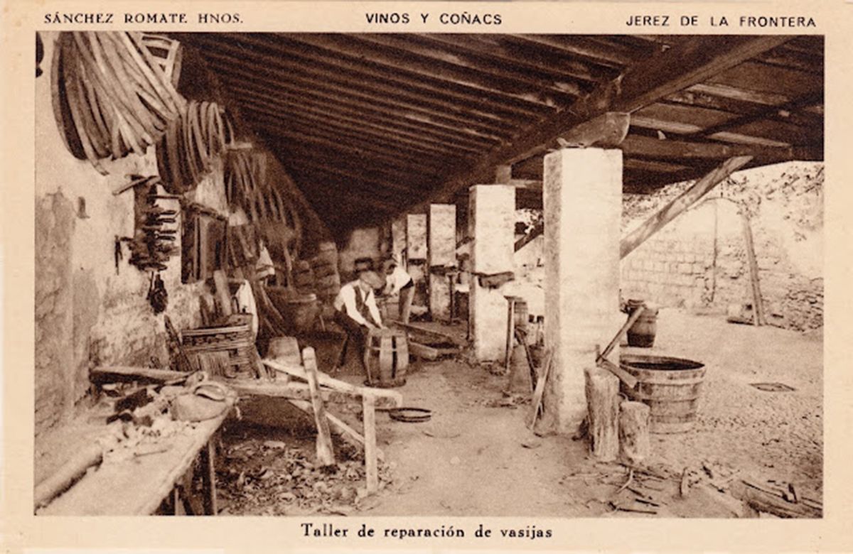 En esta región hay varios talleres de tonelería, radicando los principales en Jerez de la Frontera, cuya vasija ha sido siempre el modelo y la norma de las demás regiones vinateras de España -podemos decir, del mundo- y aparte de su esmerada construcción, puede jactarse de otra importantísima cualidad, que es el envinado que adquiere, y que las hace más apreciadas en los mercados extranjeros, especialmente para los whiskies escoceses. Ha habido en Jerez talleres de tonelería cuyos nombres han tenido fama en toda España por la excelente calidad de las vasijas que construían. Actualmente existen varios trabajaderos o talleres de tonelería de importancia, en esta comarca, y damos a continuación los nombres de los principales”: José Paz, Juan Luis González, Domecq y Chacón, Zoilo Ruiz-Mateos (Jerez); José Luis Huerta, Rafael Lores, Fco. Fdez. (Puerto Sta. María); José Bernal (Sanlúcar); Ramoneda Hnos. (Cádiz)… “precios actuales de la vasija de Jerez: bota gorda 6.000 a 7.000 ots; bota chica 4.700 pts.; media 2.400 pts.; tercio 2.200 pts.; cuarta 1.150 pts.; octavo 750 pts.; barril de dos arrobas 650 pts.; barril de una arroba 450 pts”.