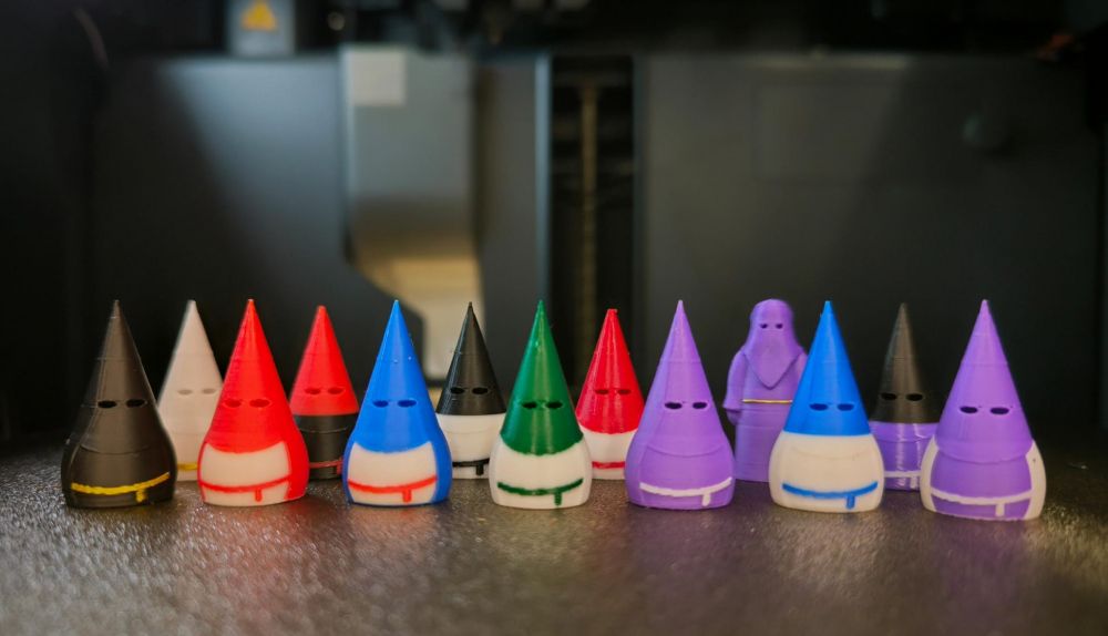Gracias a esta tecnología, Vivero diseñó un modelo con un aspecto más simpático y compacto. La fabricación de 50 unidades requiere entre 9 y 12 horas de trabajo. Cada figura se realiza en plástico especial para impresión 3D y lleva los colores de túnicas correspondientes a cada hermandad.
