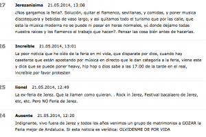 Varios ejemplos de los numerosos comentarios que hoy recogía la edición digital de Diario de Jerez.