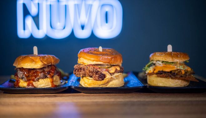 Fernando Jiménez, responsable de crear la carta de Nüvo y con experiencia en restaurantes de Barcelona, ha diseñado un menú que apuesta por sabores equilibrados y calidad sin excesos de grasa. "Lo que quería era hacer hamburguesas ricas e interesantes, pero que no fuesen de guarronearse las manos", explica Fernando. “Que tengan sabor, un poquito de grasa que le da personalidad, pero sin ser excesivamente grasientas”.