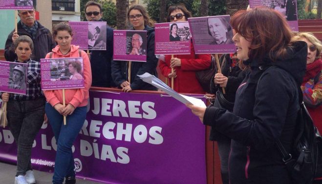 Marea Violeta Jerez homenajea a mujeres españolas relevantes en un acto celebrado este sábado en la céntrica plaza, actividad enmarcada en los actos conmemorativos del Día de la Mujer.