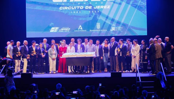 Y, cómo no, los aficionados, porque suben al escenario 40 personas que cumplieron 40 años en 2025, igual que el Circuito de Jerez, en representación de una afición como pocas.