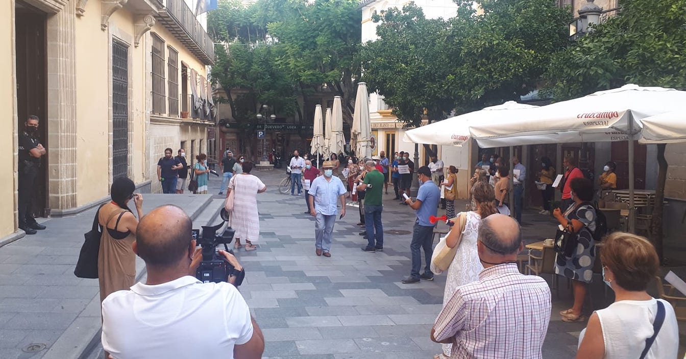 Los comerciantes y vecinos del centro de Jerez se han concentrado frente al Ayuntamiento para criticar "el estrangulamiento de la accesibilidad al centro, las limitaciones de tránsito y los efectos negativos del estado de la obra" ejecutada en Corredera-Esteve. "Estamos a favor de las obras públicas de mantenimiento, mejora y renovación del entorno y sabemos que por bien de la ciudad, por el bien de la comunidad, durante el tiempo estimado para la ejecución de las mismas, hay molestias y limitaciones con las que tenemos que convivir", expresan, al tiempo que añaden que "hace cuatro meses que comenzaron las obras en Corredera-Santa María-Cerrón, y aún la primera fase no está terminada en su totalidad, y la siguiente no tiene fecha clara para ver su fin".