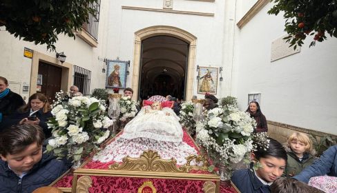 La hermana mayor, Carmen Tejero, explicaba a lavozdelsur.es que son los pequeños de las hermandades de la ciudad quienes protagonizan el traslado, siempre por invitación expresa de la corporación. Son ellos quienes portan las pequeñas andas en las que va el Niño Jesús y quienes culminan el acto con la lectura de un manifiesto en el que se pone en valor el significado de esta veneración.