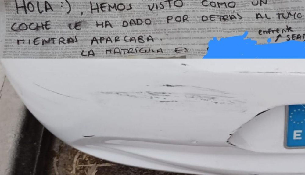 "Hemos visto cómo un coche golpeaba por detrás a otro mientras que aparcaba", apuntaba la nota junto a los datos de la matrícula del vehículo que originó el topetazo.