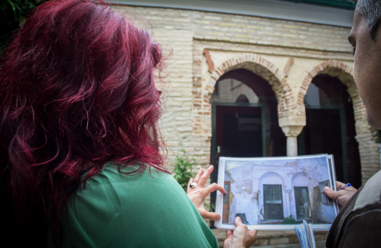 Verano de 2000. La pareja ya ha vuelto definitivamente de Holanda y toca empezar a meterle mano al que será su futuro hogar. La finca está dividida en diversas estancias -recordemos que había sido una antigua casa de vecinos- pero a simple vista se divisan algunos elementos que podrían ocultar algo más. Entre las puertas de dos viviendas hay una columna que parece dividir dos arcos que sin embargo, cubiertos por cemento y cal, no parecen gran cosa. Al empezar a picar esas desgastadas paredes aparecen ladrillos y lo que aparentaban arcos efectivamente son arcos. Juana y Manolo se dan cuenta de que ahí, oculto, hay mucho más.
