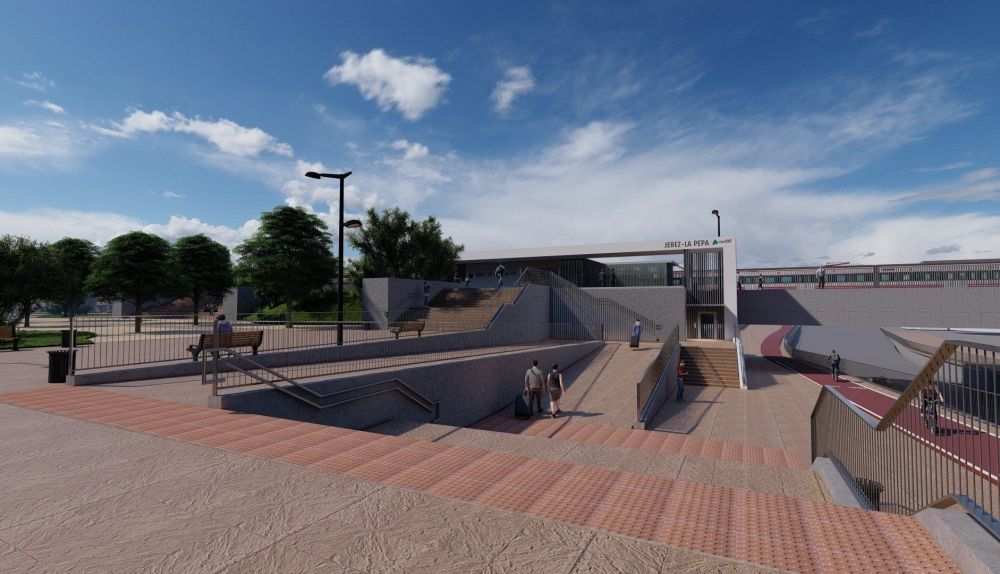 Los Presupuestos Generales del Estado (PGE) han librado una partida para la redacción del nuevo apeadero de Jerez, en la zona de Palos Blancos. La ministra de Transportes, Movilidad y Agenda Urbana, Raquel Sánchez, ha presentado el pasado miércoles junto a la alcaldesa, Mamen Sánchez, varias recreaciones de cómo quedará la infraestructura que, en el mejor de los casos, según especialistas consultados, no estará antes de tres años. Redacción, licitación del proyecto, adjudicación y obras pueden suponer varios años hasta que la nueva estación sea realidad. De momento, los avances invitan al optimismo.