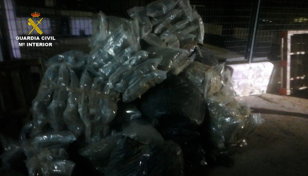 El tráiler se había preparado en el interior de la nave utilizando para su ocultación enormes sacos que contenían pellets para calefacción y para lo que era necesario descargar el tráiler al completo para acceder a la marihuana, la cual se encontraba en forma de cogollos secos y listos para su venta, transportándose en bolsas estancas al vacío. Tras la detención de los cuatro presuntos responsables del envío y la descarga de todo el tráiler, se contabilizaron un total de más de 204 kilos de este estupefaciente, que se correspondería a la recolección de más de 6.800 plantas en estado óptimo de floración.