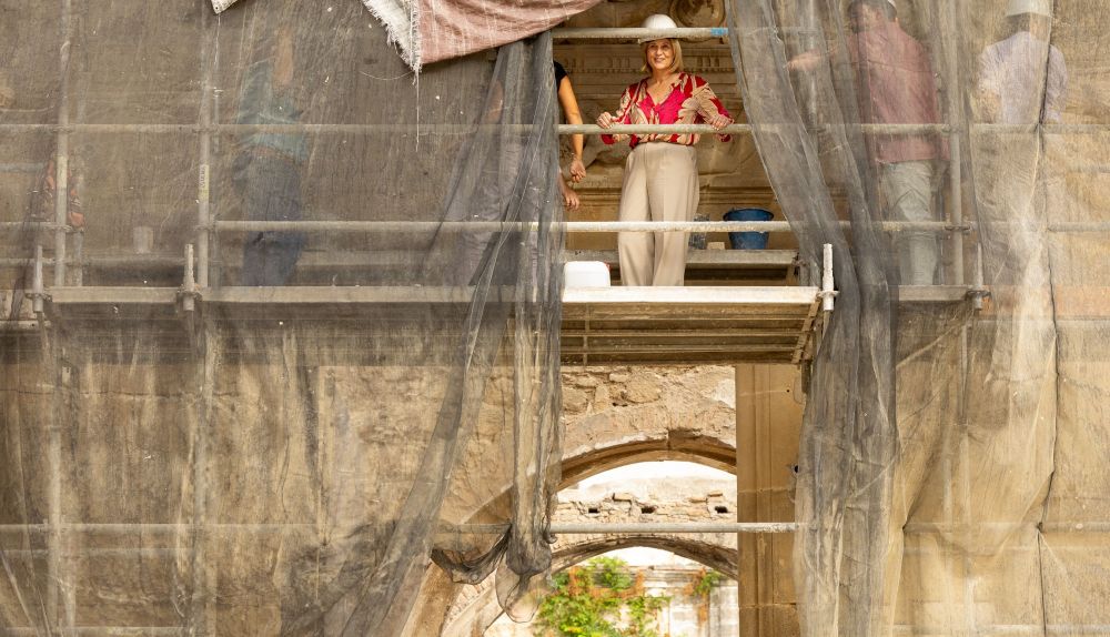 En cuanto a la obra en sí, una vez finalice la intervención en la fachada se seguirán manteniendo los andamios para evitar la suciedad que provoca la intervención que seguirá en curso en la Plaza del Mercado y que, una vez finalizada ésta, se aplicará un tratamiento de ‘hidrofugación’ “de tal manera que se le aplicará un producto a la fachada para repeler la suciedad” y a lo largo del mes de agosto se colocará la viguería de madera.