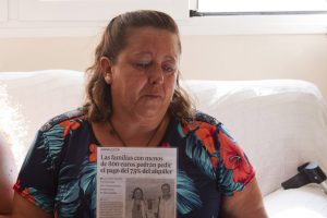 Otra vecina, que no vive de okupa sino con sus padres también está presente durante la entrevista. El caso de María Josefa Gómez pone los pelos de punta. Hace dos años y medio se rompió la tibia y el peroné al bajar del coche y desde hace un año se le diagnosticó que sufre un 45% de minusvalía, por lo que cobra una paga de 428 euros. Sufre de osteopenia (la fase previa de la osteoporosis), fibromialgia, una enfermedad caracterizada por el dolor crónico y la percepción de fatiga, además de otros síntomas, y también tiene bronquitis asmática y ha pasado por periodos depresivos. María Josefa está separada desde hace 14 años, ya que sufría de malos tratos. Se vino de Barcelona, donde vivió con su marido durante 22 años, y desde entonces ha criado ella sola a su hija, que hace unos meses cumplió 18 años. No puede evitar emocionarse al contar su historia. La relación con sus padres no pasa por su mejor momento y espera poder vivir en una casa con su hija más pronto que tarde. Aunque con un alquiler asequible, que pueda permitirse. "Emuvijesa me dice que estoy en tierra de nadie, que ni soy okupa ni estoy en la calle", cuenta. Durante la charla agarra con fuerza un recorte de periódico con el siguiente titular: "Las familias con menos de 800 euros podrán pedir el pago del 75% del alquiler". "¿Y con esto qué pasa?", se pregunta entre sollozos. Está desde 2003 en la lista de espera para acceder a una vivienda municipal, pero aún no lo ha conseguido. Su hija, que estudia 1º de bachiller, quiere ser profesora infantil, y ella quiere que estudie, "para que no le pase como a mí".