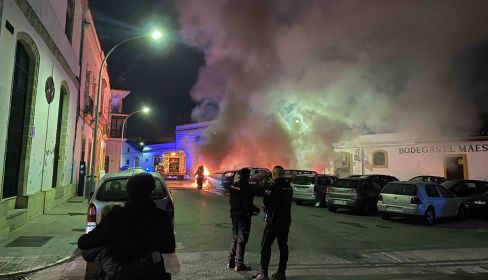 "En la calle Sancho Vizcaíno está ardiendo un coche recién comprado", comenta un operario municipal, mientras se suceden las pequeñas explosiones en el centro de Jerez, esas que han sobresaltado a los vecinos. En los diferentes focos se han desplegado, aparte de Policías Nacional y Local, y por supuesto Bomberos, que han ido llegando como han ido pudiendo, operarios de limpieza y baldeo.