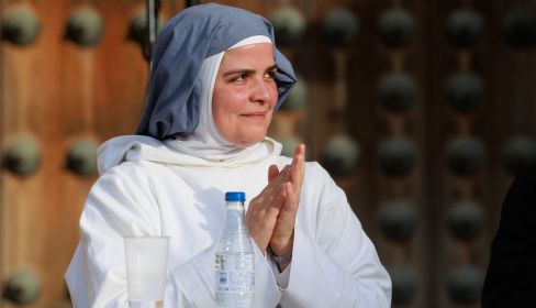 Durante todo ese rato en el que se ha dirigido a unas 200 personas presentes en la conferencia frente al pórtico de La Cartuja, se ha expresado con sinceridad. Una capacidad comunicativa inconcebible para alguien que, principalmente, vive en reclusión, en silencio casi a diario, con alguna excepción de poner en común vivencias y reflexiones con sus hermanas, ancianas y jóvenes, de infinidad de países diferentes.