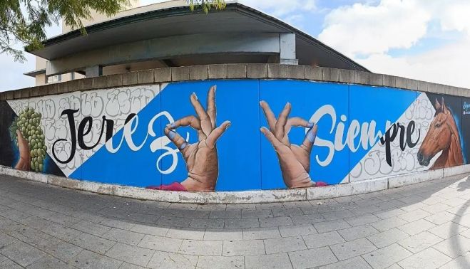 "No solo esto es Jerez, es mi último proyecto en mi ciudad natal, aquella ciudad en la que si no te enfocas en el vino, el caballo o el flamenco eres invisible y tu talento no se tendrá en cuenta, parecerá que no vales o no mereces la pena. Y es que, por desgracia, muchos artistas son mucho más valorados fuera de su tierra que en su ciudad de origen, de ahí el dicho "nadie es profeta en su tierra", ha escrito Décima, un grafitero jerezano multipremiado que ha plasmado este Jerez Siempre que sorprende a viandantes y personas que circulan por ese entorno junto a Vallesequillo.