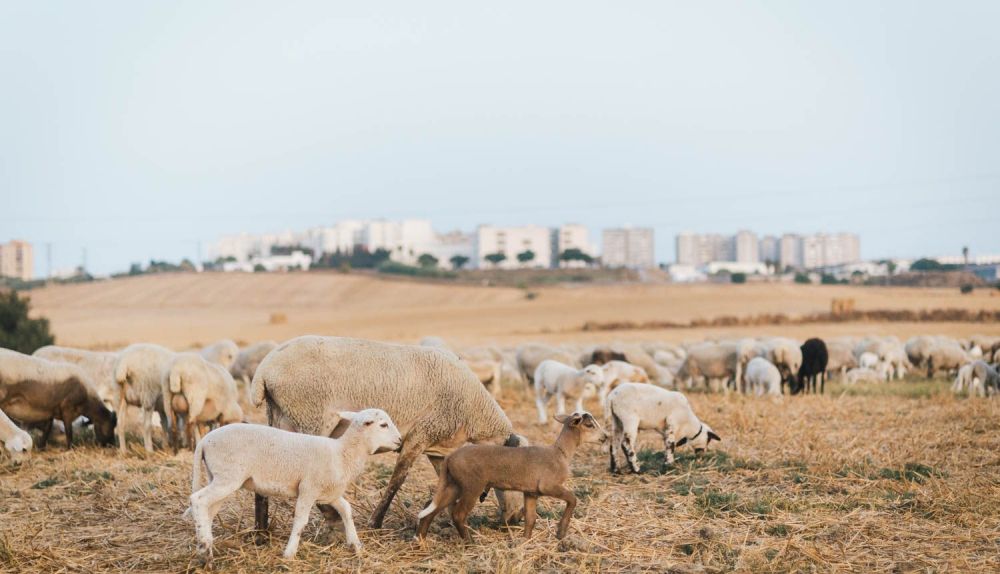 Este 25 de agosto, cuando parece que lo peor del riesgo de fuegos ha pasado en Andalucía -por lo menos por ahora-, unas 700 ovejas estaban sobre un trigal tras la última cosecha. Apenas quedan restos amarillentos de paja que apenas se mantiene sobre la tierra.