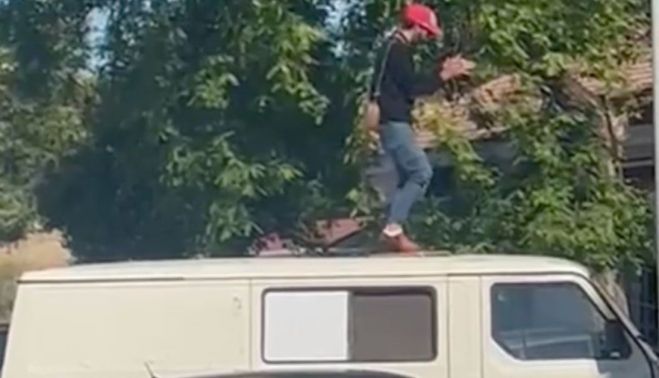 Lo cierto es que tras encaramarse encima del vehículo, este hombre se puso a tocar las palmas y a zapatear, sin moverse del sitio, como quisieran muchos de esos bailaores de salón sin pellizco.