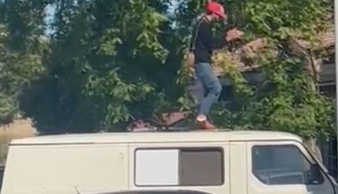 El momento sobre el peculiar escenario fue seguido muy de cerca por varios vecinos del artista que no dudaron en grabar la escena. En Jerez, ya se sabe, el arte puede aparecer de cualquier esquina e incluso encima de una furgoneta.