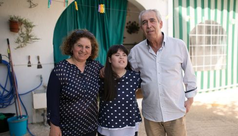 Desde pequeña le fascina el mundo de la comunicación. Lo lleva en la sangre. Su padre, Antonio, empezó a estudiar Periodismo en la Universidad Complutense de Madrid, pero lo tuvo que dejar por circunstancias personales. Su hermana mayor llegó a terminar la carrera y a ejercer como tal en varios periódicos y televisiones locales, pero más tarde derivó su carrera profesional hacia la enseñanza. “Tu hermana estudió Periodismo y tú vas a ser más periodista que ella —de hecho colabora en programas de Frontera Radio y Onda Jerez—”, le espeta su madre, Ana María González, a Paola, que nació con Síndrome de Down, por eso estuvo acudiendo a Cedown hasta que tuvo edad para realizar estudios no obligatorios. La pequeña de la familia Sánchez González es también la más nerviosa. El cuadrante horario que tiene pegado en el armario de su cuarto revela que no puede estarse quieta, como ella misma afirma, por lo que a sus clases en el IES Almunia —estudia un FP de grado medio de técnico de actividades comerciales— le suma las que recibe en la Escuela María Espejo, donde estudia interpretación, canto y expresión corporal. “Me viene bien para conocer las emociones, los sentimientos”, relata Paola Sánchez.