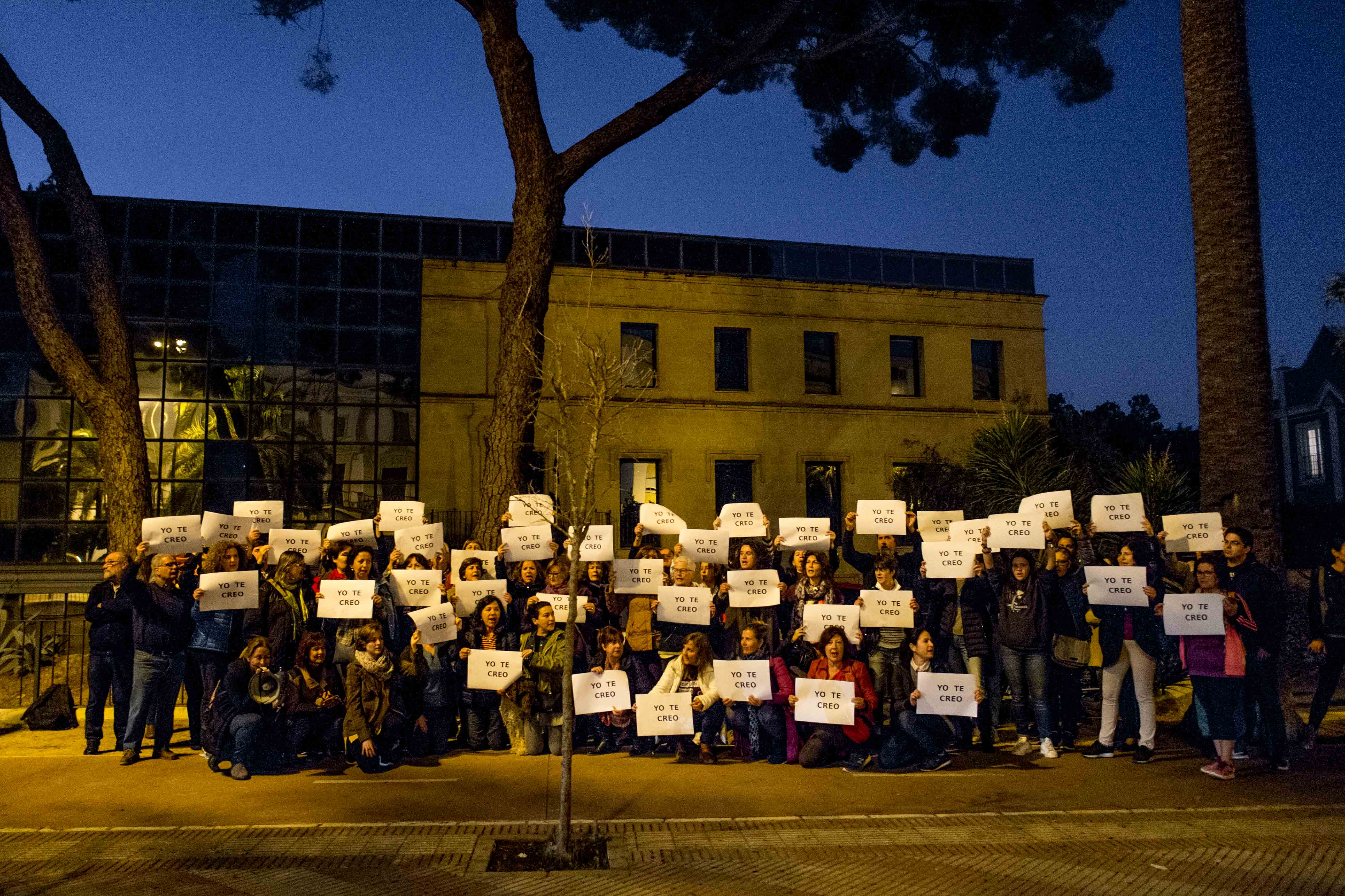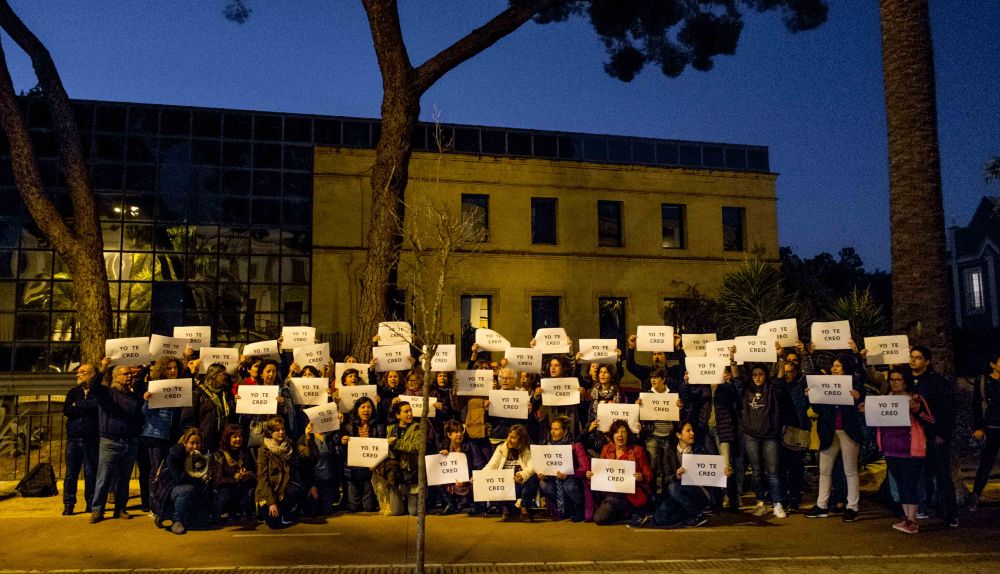 Casi un centenar de personas se ha concentrado en la Audiencia provincial bajo el lema "La manada somos nosotras", con un cartel en el que se podía leer: "Yo te creo". Después de que el juez José Francisco Cobo Sáenz, que preside el tribunal que juzga el caso de La Manada, aceptase un informe sobre los pasos posteriores de la víctima tras la supuesta violación, un gran número de colectivos feministas han organizado masivas protestas frente a las diferentes dependencias judiciales para denunciar dicho abuso. El juicio contra los cinco acusados de la supuesta violación de una joven madrileña de 18 años en la madrugada del 7 de julio de 2016 en Pamplona ha desatado la alarma social cuando el juez ha admitido una prueba de la defensa en la que se refleja que la víctima "llevaba una vida normal" tras la supuesta violación. "Se nos pone donde el machismo quiere: en casa, con la pata quebrada y escondidas", ha murmurado una mujer durante la concentración celebrada en Jerez este lunes.