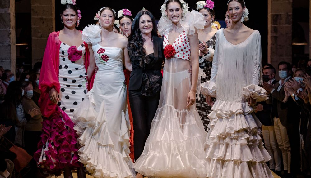 Para la creadora jerezana, sus trajes “son fuerza, ante todo, como Lola Flores. Por eso he hecho una colección en rojo compuesta de ocho vestidos inspirados en Lola desde el primer momento. Son modernos, con aberturas, con flecos y volantes de caracola que buscan el movimiento. Porque a ella le encantaba la libertad para poder bailar y moverse sin prescindir de la elegancia, uno de los parámetros que siempre he tenido muy claro que es esencial en la mujer que yo visto de flamenca”.
