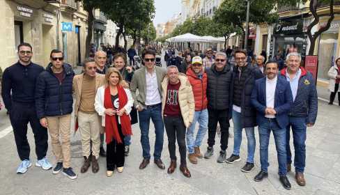 José Mota, Florentino Fernández, Miguel Ángel Silvestre, Santiago Segura o Pitingo han paseado este miércoles por las calles del centro de Jerez junto a la alcaldesa, Mamen Sánchez, y al delegado de Urbanismo, José Antonio Díaz.