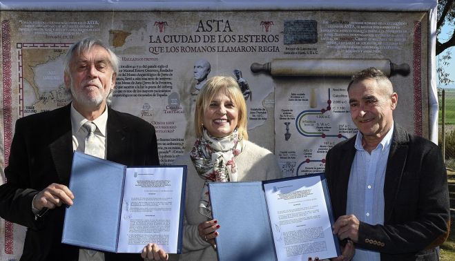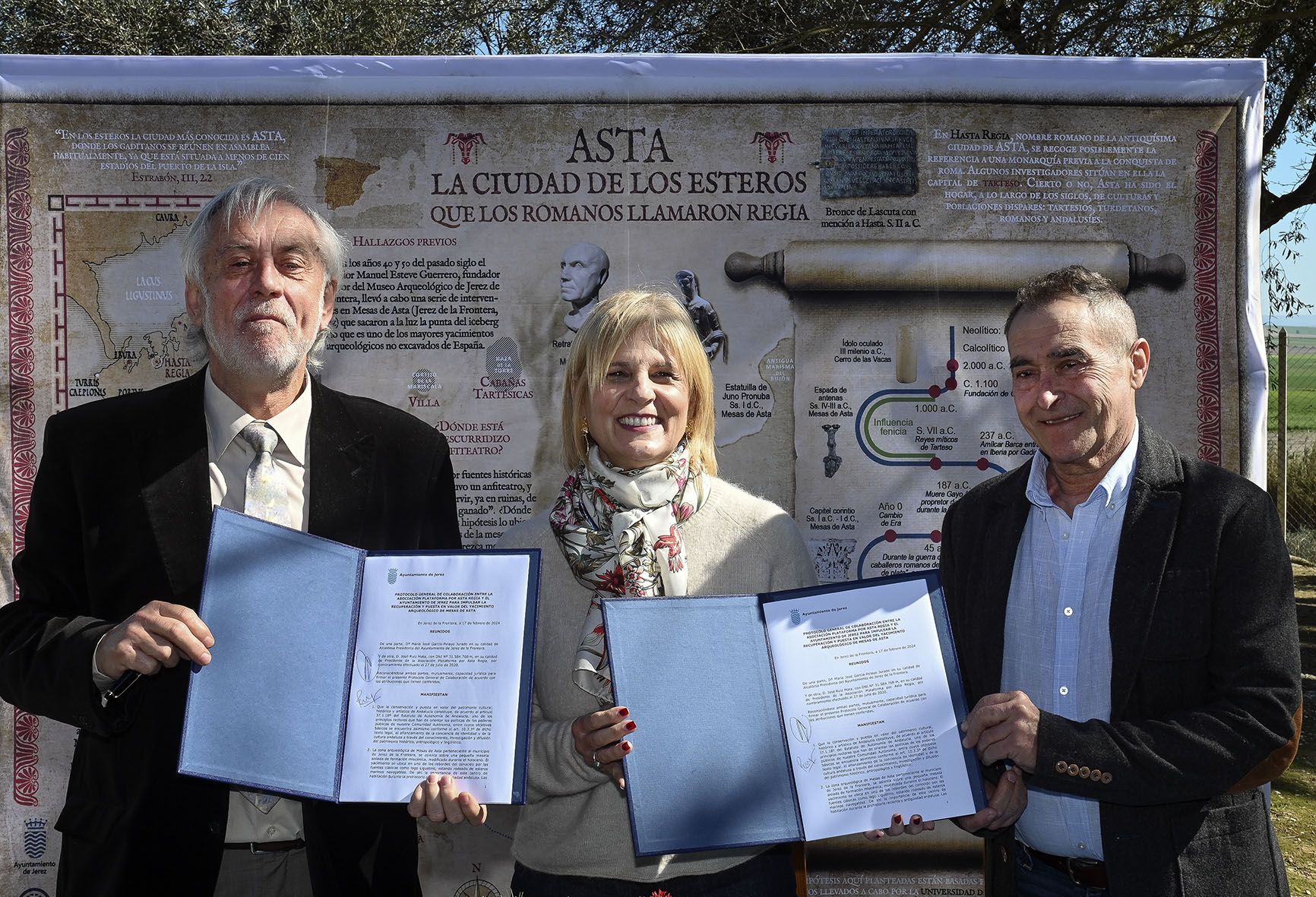 Un hito significativo en el impulso de la recuperación del yacimiento arqueológico de Mesas de Asta, en la ciudad tartesia de Asta Regia. La alcaldesa de Jerez, María José García-Pelayo, ha firmado un protocolo de colaboración con la Asociación Plataforma por Asta Regia, junto al presidente de la entidad, José Ruiz Mata.