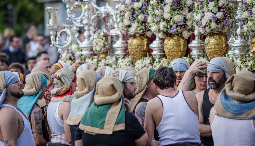 La Hermandad de la Paz de Fátima ha decidido regresar a su templo a pesar de la amenaza de lluvia. Ya va camino de La Constancia por un recorrido más corto.