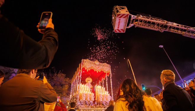 En paralelo, la hermandad sigue trabajando en la transformación de su paso de palio. Los cambios ya se dejan notar, con una estética renovada que ganó en elegancia durante todo el recorrido, desde la salida hasta su regreso a su barrio, la Constancia.