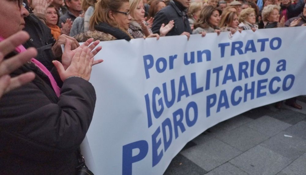 Carrión cuenta que visitó a Pacheco hace pocos días y, como siempre, salió de la cárcel “con el cuerpo cortado”. “Al final el preso se queda dentro y los demás nos vamos”. “Ahora está conociendo la cárcel”. La frase, que pronuncia Rodríguez Carrión, pero que proviene de uno de los funcionarios de prisiones de Puerto III, resume el sentir de los presentes en una concentración que reúne a más de 200 jerezanos. “Todos los reos tienen ciertos derechos, lo único que pedimos es que tenga los mismos que los demás”, dice José Rodríguez Carrión, quien considera que lo que piden es que el hecho de llamarse Pedro Pacheco “no suponga una condena añadida”.