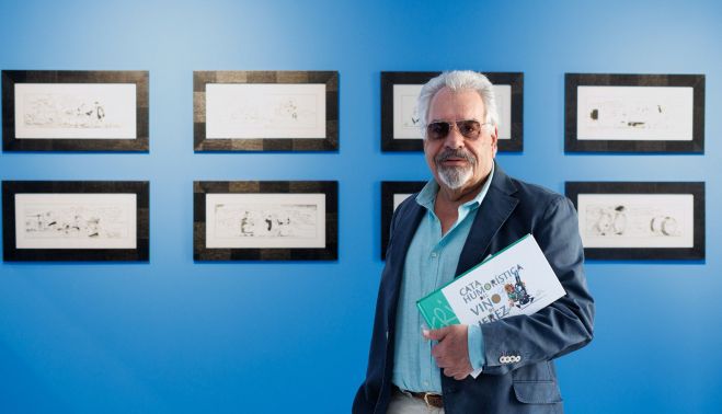R. No, hombre, yo estaba ya harto, ¿eh? Porque es que me ha llevado 37 años. 37 años todos los días con el compromiso, y eso era un compromiso gordo. Lo que sí puedo decirte es que ahora me he quedado muy satisfecho de ver algunas de ellas colgadas de las paredes de este palacio, cuando muchas de ellas nacieron en las servilletas del bar Maypa. No pensaba yo que iban a tener la categoría de poder estar colgadas en un palacio tan extraordinario. Estas viñetas no son obras de arte, son una obra menor, pero vamos, ahí están, es un trabajo bien hecho. Si ellos están contentos, yo tengo que estar contento también.