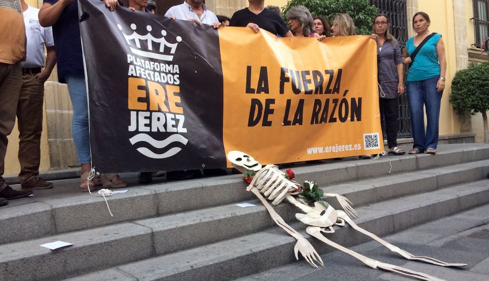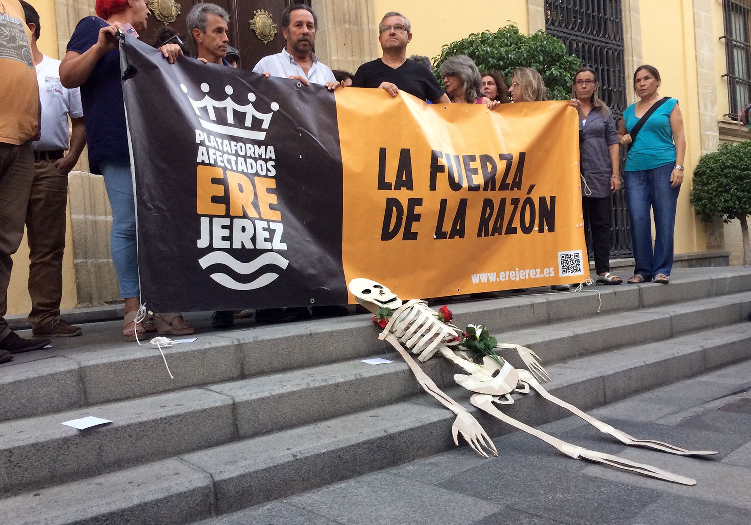 En el suelo de Consistorio quedan pequeñas hojas que han impreso y en las que reza: “Rogad por las almas de 116 trabajadores asesinados, injustamente ejecutados en Jerez por el Partido Popular y cobardemente rematados por el Partido Socialista. Sus familias y amigos no lo olvidarán dentro de tres años”. La existencia del último informe interno del Ayuntamiento, que desaconseja la readmisión ante la posibilidad de prevaricar, malversar y realizar nombramientos ilegales, firmado por una miembro del gabinete jurídico municipal, señala que “la incorporación de los trabajadores afectados por el ERE no es más que el fin último para dar cumplimiento a una promesa electoral". También recoge que “quien suscribe muestra su más absoluta reserva a la cumplimentación de los acuerdos transaccionales de referencia, por considerar que los mismos pudieren no ser compatibles con la salvaguarda del interés público como esencia misma de la función pública".