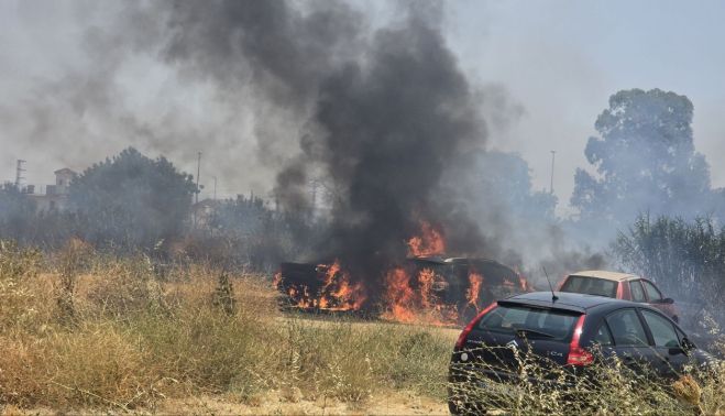 El fuego se ha originado en una explanada, donde hay varios coches aparcados, que se encuentra próxima a la calle Séneca, en la zona donde están los pisos que están construyendo nuevos en Pozoalbero, cerca de la barriada de Las Flores.