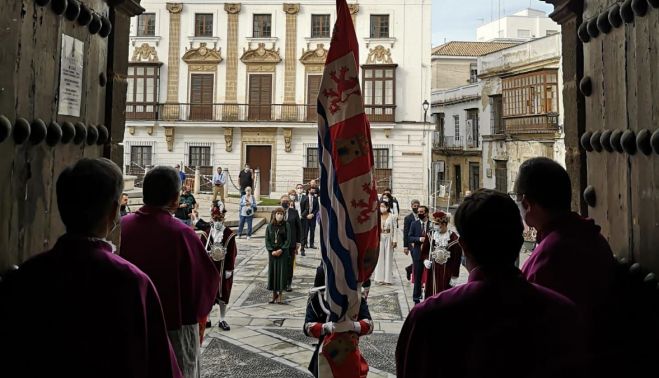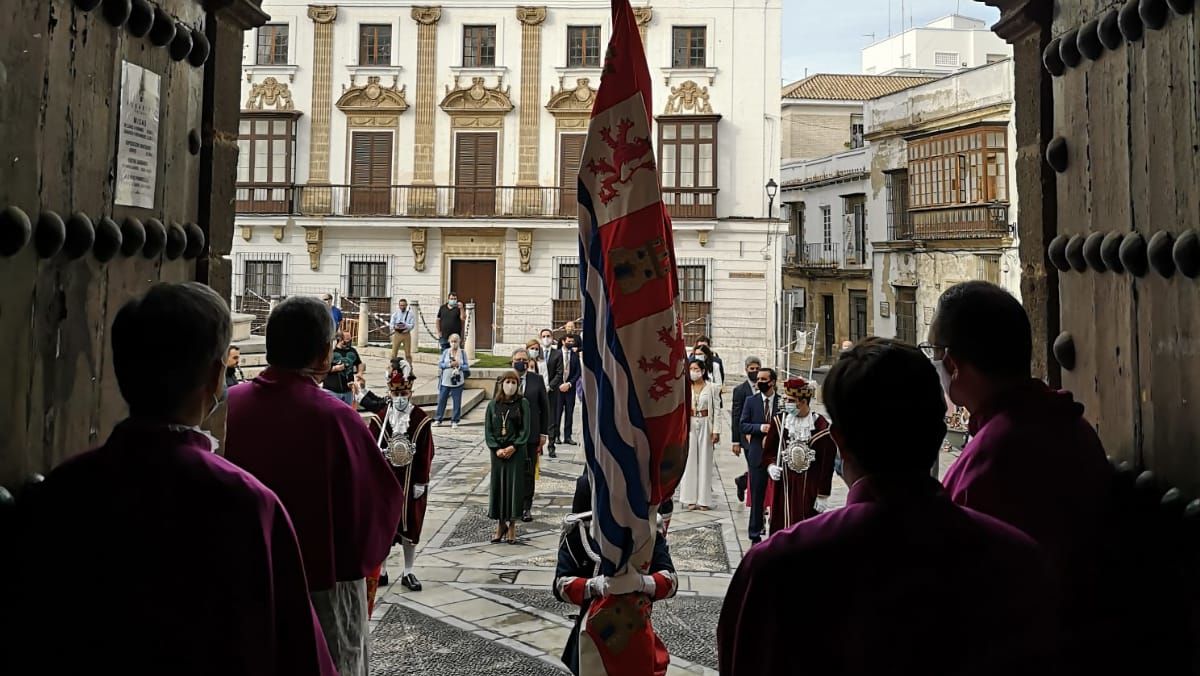 En 1991, después de siglos de custodia en la Catedral de Jerez, el entonces alcalde Pedro Pacheco recibía el Pendón de manos del deán, José Luis Repetto Betes. Fue un acto engalanado, incluso en bandeja de plata. El Ayuntamiento lo colocó en una cajonera, y explicaban que estaba "muy deterioriado". A ojos de cualquiera, un trapo, simplemente... Pero de un valor histórico reconocible y, sobre todo, simbólico para Jerez.