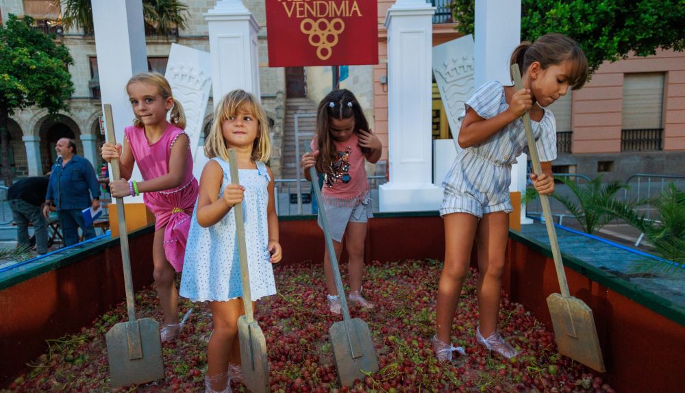 Las Fiestas de la Vendimia tienen también su parte didáctica con una serie de actividades vinculadas a las labores del vino, enfocadas a los más pequeños. Este fin de semana se dedica a la pisa de la uva, para lo que se instaló un pequeño lagar, simulando al que se instala para la pisa ‘grande’ de la catedral, en la plaza del Arenal.