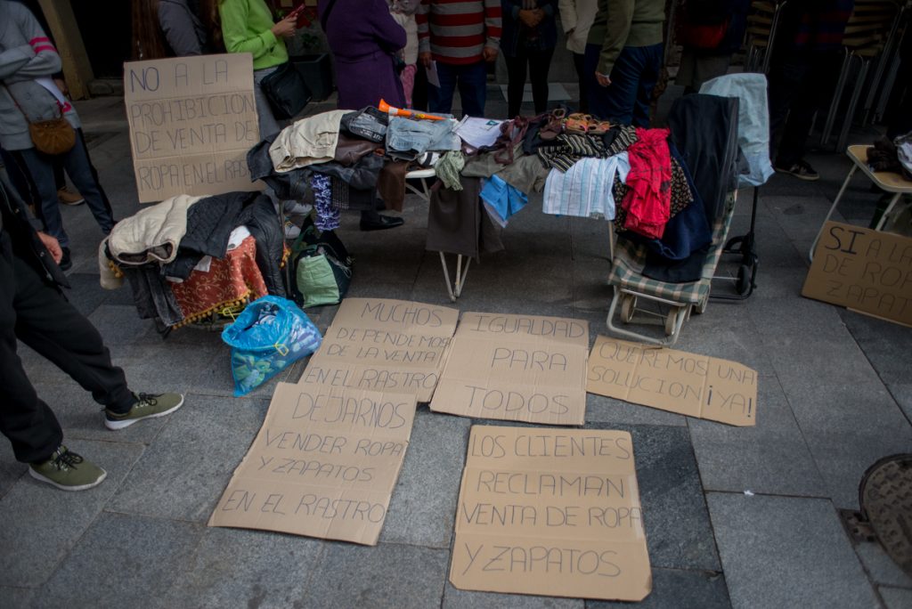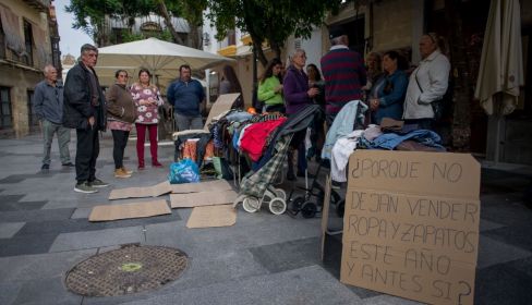 Este colectivo de vendedores de ropa usada del rastro prevé volver a concentrarse el próximo lunes si no se les deja realizar su actividad como cada domingo en la Alameda Vieja.