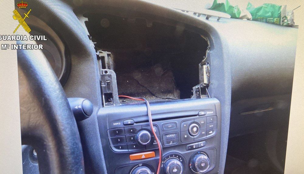Durante el registro, los guardias civiles confirmaron que en el salpicadero del vehículo se había practicado un doble fondo o "caleta" situado en el centro del mismo que albergaba en su interior cinco placas de cocaína, cuidadosamente envasadas al vacío, que arrojaron un peso de 5,5 kilos.