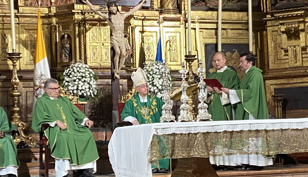 La misa ha estado presidida por monseñor José Rico Pavés, que también ha servido como despedida del que ha ejercido la tarea pastoral, el sacerdote Manuel Lozano, que ha sido destinado como párroco de la localidad de Villamartín donde tomará de posesión el próximo 26 de julio.