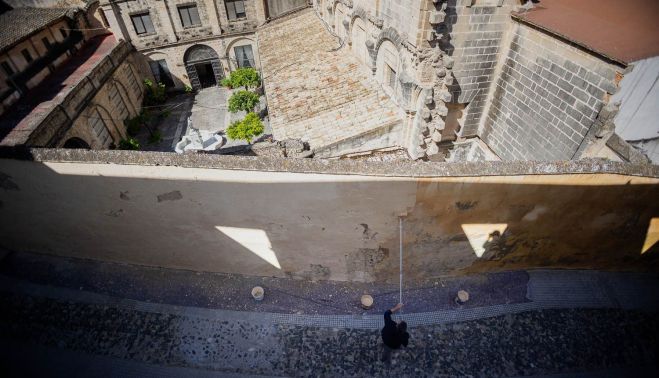 En estos días se está procediendo a pintar el muro, cuyo efecto estético se deja notar, pero no lo suficiente dado el discutible aspecto que tiene la tapia, cuyo estado no es acorde con el sitio que ocupa, lugar de tránsito de numerosos visitantes que van desde la Catedral hasta el Alcázar o las bodegas González Byass, en pleno corazón del casco antiguo de la ciudad. Esta construcción, más allá del trabajo de pintura que ahora se le aplica, precisa de una intervención más profunda, ya que salta a la vista los numerosos desprendimientos que tiene en el enlucido.
