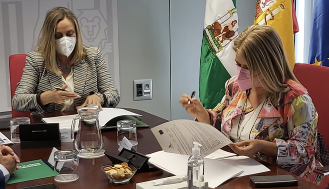 La alcaldesa, Mamen Sánchez, ha firmado este martes en Sevilla con la consejera de Fomento, Infraestructuras y Ordenación del Territorio, María Francisca Carazo, el convenio para la intervención de regeneración del Eje del Arroyo, un proyecto clave y decisivo dentro de la estrategia del gobierno local para dar vida al centro histórico, y que cuenta con una inversión aproximada de 1,2 millones de euros, a través de la Iniciativa Territorial Integrada, ITI.