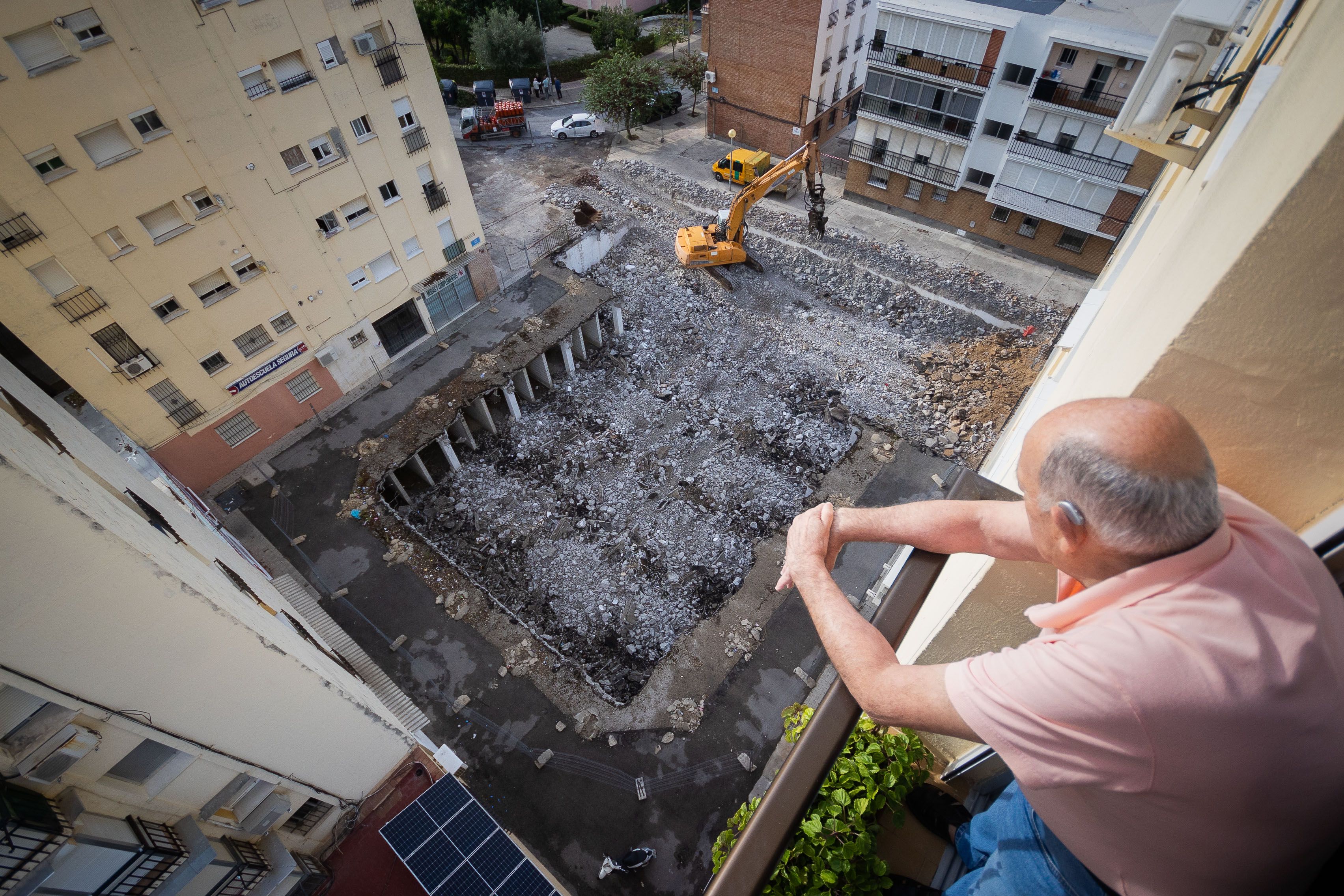 Por delante quedan cuatro meses de obras. Este viernes, una comitiva de técnicos municipales acudía a la supervisión de las obras, que han ido picando y dejando al descubierto el terrorífico parking que nunca lo llegó a ser. Pueden verse los bajos de los bloques, los tabiques pintados junto a las cocheras, aquellas que recuperaron los vecinos para darse cuenta de que la plaza se les hundía.